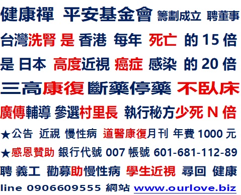 洗腎、癌 台灣第一死亡率 是港日的十餘倍!化解病因 是 正道!